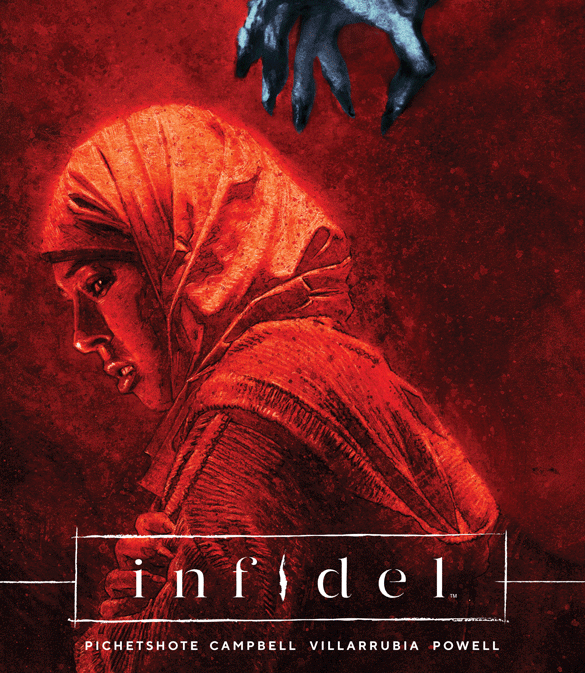 Written by Pornsak Pichetshote and illustrated by Aaron Campbell and released in March by Image Comics, “Infidel” is a haunted house story for the 21st century, following an American Muslim woman and her multi-racial neighbors who find themselves living in a building haunted by strange creatures that seemingly feed on xenophobia.